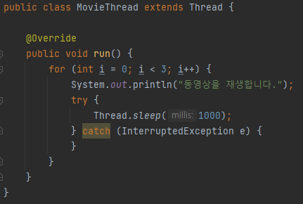 new MovieThread() 로 생성하여 start() 시켜주고 있다