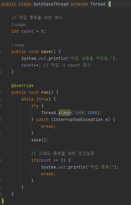 다음과 같이 메인 스레드는 끝나도, AutoSaveThread는 계속해서 돌아가게 된다