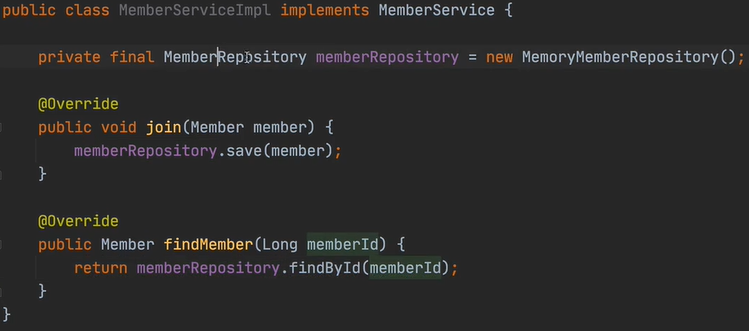 join은 회원가입을, findMember는 memberId로 회원정보를 조회하는 기능이다.