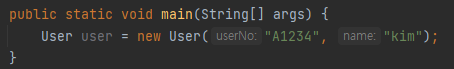 User 객체 생성 시 필수 파라미터를 넣어주지 않으면 빨간줄이 뜨면서 에러가 발생한다.
